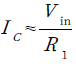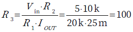 まず,R1の値を決めます.R1の値は自由に決めることができますが,ここではVinが5Vのときに,IC1が250μAとなる値に設定します.