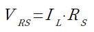 この回路で,負荷電流(IL)とOUT端子の電圧の関係を調べます.抵抗(RS)は電流検出抵抗で,ILを電圧に変換します.RSの両端電圧(VRS)は式1で表されます.