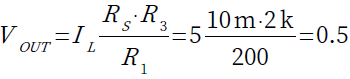 VOUT=IL×RS×R3/R1=5×10m×2k/200=0.5V